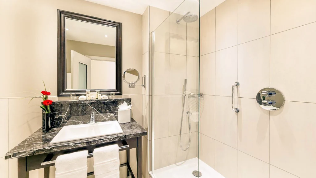 حتوي هذه الغرف الفسيحة التي تتميز بأسلوب حسن الضيافة على أجهزة تلفزيون بشاشات مسطحة وحمّام فردي خاص مزود بلوازم استحمام مجانية ونعال، ويتم تقديم عبوات المياه والقهوة والشاي والبسكويت مجاناً في الغرف، كما يتم تجديدها يومياً.