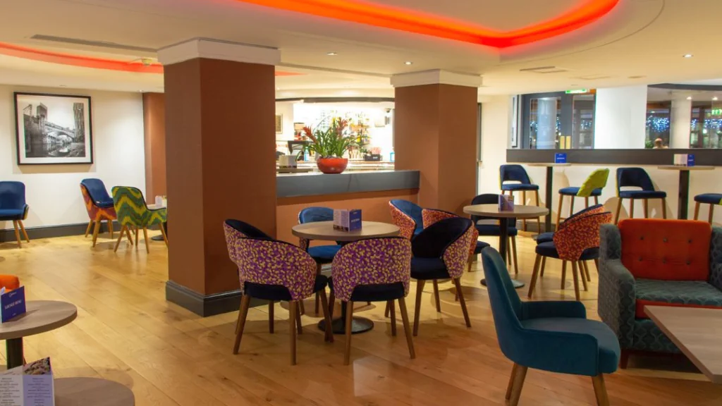 يقدم مطعم Quays الأنيق المأكولات البريطانية والعالمية حتى الساعة 10 مساءً، كما يقدم البار الوجبات والمأكولات الخفيفة ويعرض المباريات الرياضية المباشرة، فيما تشمل المرافق الإضافية في مكان الإقامة هذا مركزاً للأعمال.