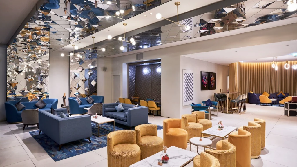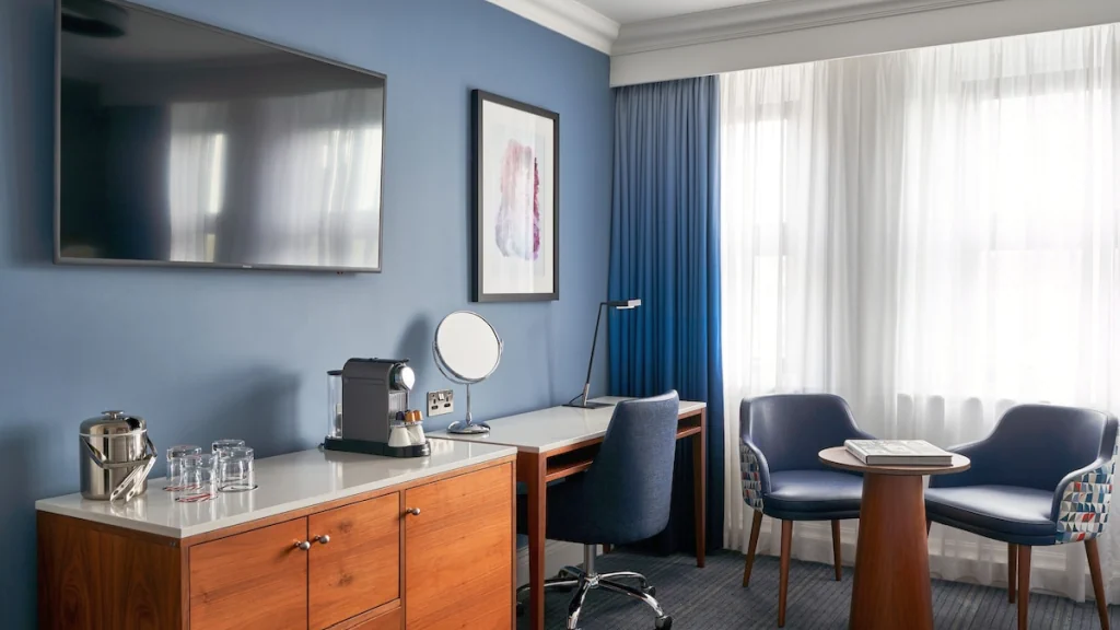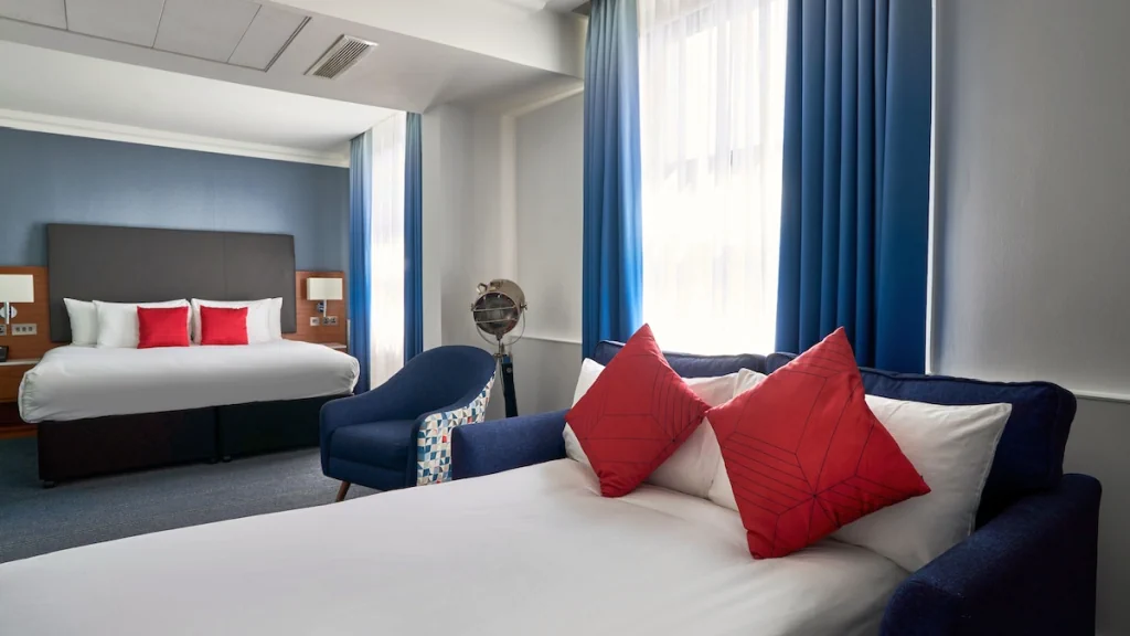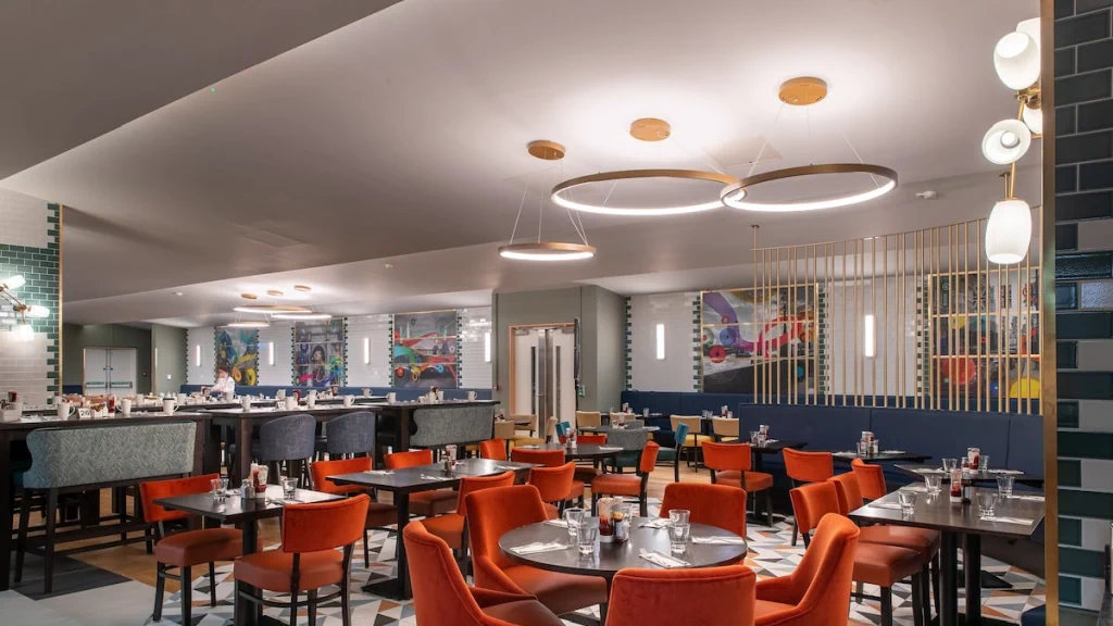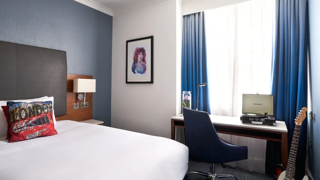يوفر الفندق لضيوفه الراحة والأناقة والتصميم الحائز على جوائز، جنباً إلى جنب مع 900 غرفة فاخرة ومرافق عصرية. ويمكن للضيوف اختيار أسعار الإفطار والعشاء ليستمتعوا بهما في SOUND London، وهو وجهة مكان الإقامة الأولى للترفيه الحي وتناول الطعام. كما يمكنهم الاستمتاع بأفضل المأكولات المستوحاة من المطبخ الأمريكي جنباً إلى جنب مع الموسيقى الحية الليلية من أفضل المواهب في لندن، والتي تضم قائمة ثابتة من طبقين مصحوبة بكوكتيل مميز. يعد بوفيه الإفطار المتوفر في مكان الإقامة والذي نال استحساناً كبيراً هو الطريقة المثالية لبدء اليوم قبل الانطلاق لاستكشاف العاصمة.