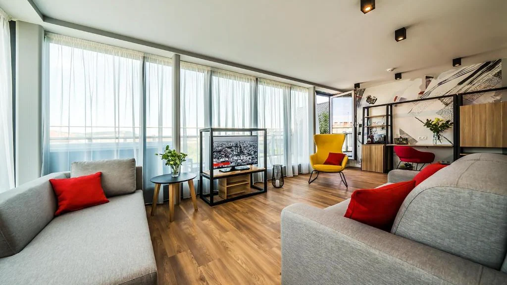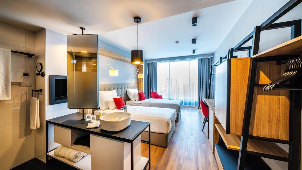 تتميز الغرف في هذا الفندق بأنها مكيّفة، وتحتوي على مكتب وغلاية وثلاجة وصندوق ودائع آمن وتلفزيون بشاشة مسطحة، بالإضافة إلى حمّام خاص مزود بدش، كما تشمل الغرف آلة لتحضير القهوة ، بينما تضم بعض الغرف شرفة، فيما يوفر البعض الآخر إطلالات على المدينة، وتم تجهيز جميع الغرف في فندق Up Hotel Budapest ببياضات أسرّة ومناشف.
