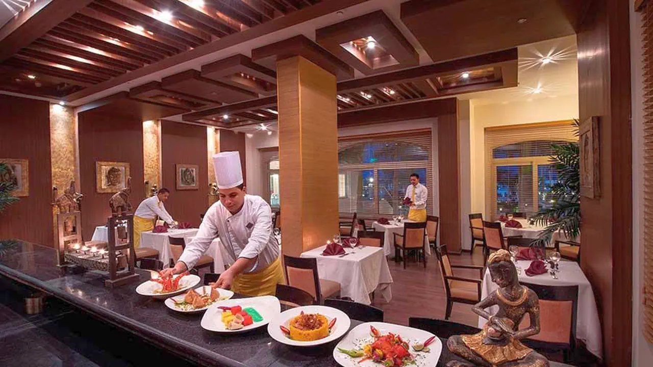تتضمن خيارات تناول الطعام مطاعم متخصصة في المأكولات الإيطالية والصينية واليابانية، بالإضافة إلى المأكولات البحرية. ويتميز بار Long في الفندق بوجود مكتبة وطاولات بلياردو ومساحة للرقص، بينما يقدم بار Vitamin عصائر صحية. كما يقدم مطعم Turquoise الرئيسي مجموعة متنوعة من المأكولات العالمية مع قوائم متغيرة يوميًا.