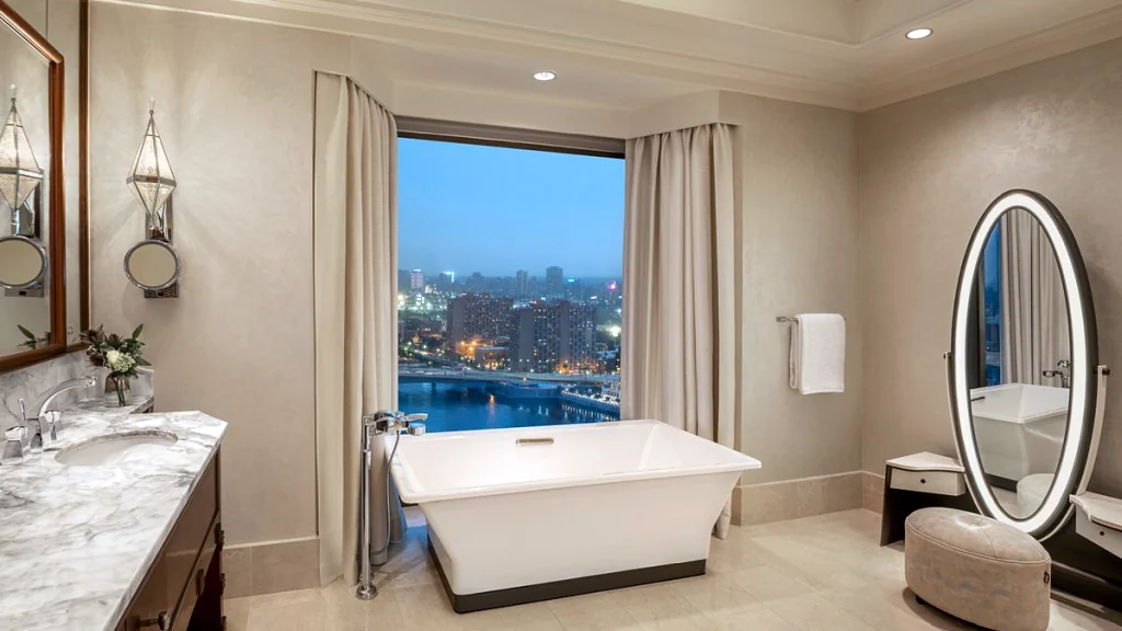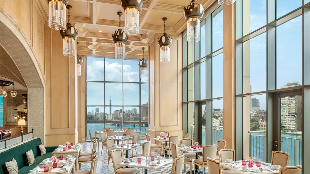 الخدمات والمرافق: يقدم الفندق مجموعة شاملة من المرافق الراقية، بما في ذلك عدة مطاعم تقدم مأكولات متنوعة، من الأطباق العالمية إلى النكهات المحلية الراقية. كما يضم سبا فاخر يقدم مجموعة من العلاجات الاسترخائية والتجميلية، بالإضافة إلى مركز للياقة البدنية مجهز بأحدث المعدات. يتوفر أيضًا حمام سباحة خارجي مع إطلالات على النيل، ليتيح للضيوف الاستمتاع بتجربة استرخاء لا مثيل لها.