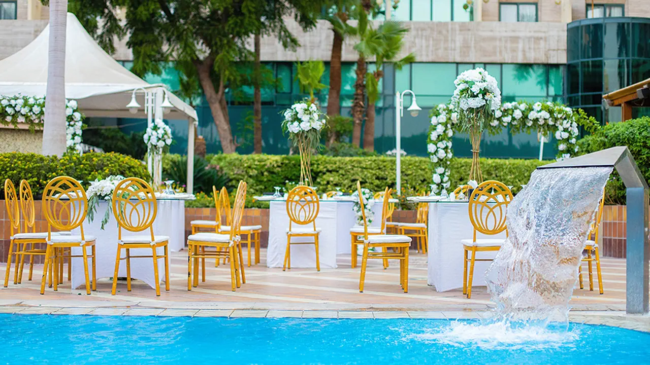 - بار بجانب المسبح: استرخِ بجانب المسبح واستمتع بالمشروبات المنعشة والوجبات الخفيفة في أجواء هادئة ومريحة.