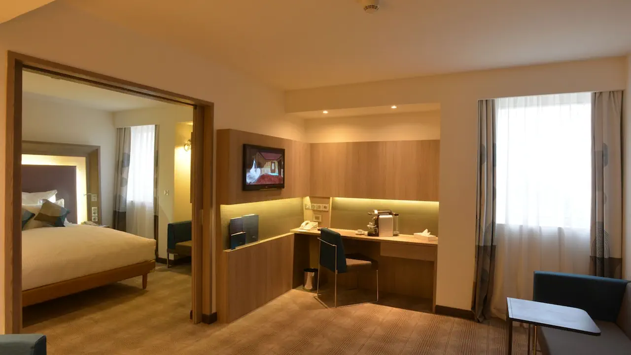 • غرف مريحة وعصرية: تحتوي الغرف على أسرّة مريحة، تلفاز بشاشة مسطحة، خدمة الواي فاي المجانية، ومرافق لتحضير القهوة والشاي. تتميز الغرف بتصميمات أنيقة وراقية توفر راحة استثنائية.