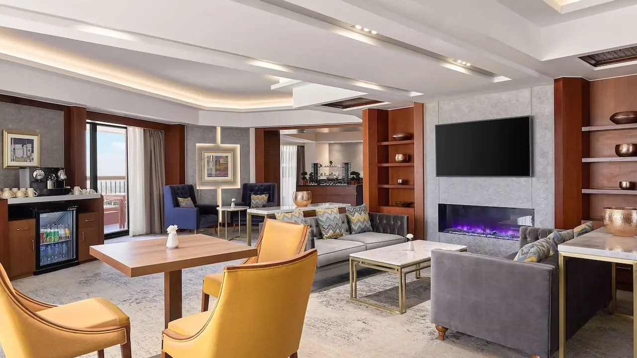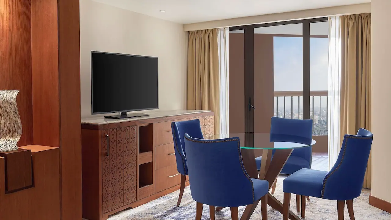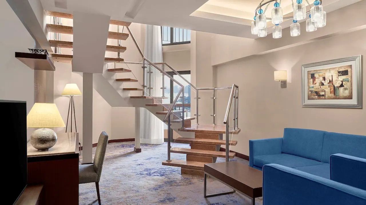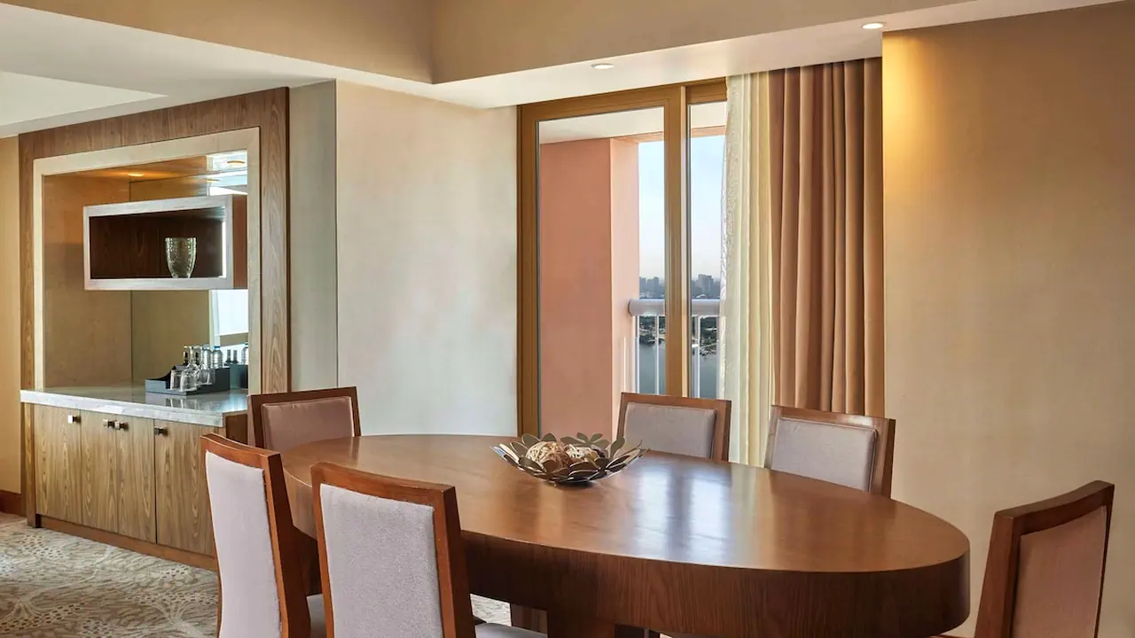 - الجناح الرئاسي: يقدم الجناح الرئاسي تجربة لا مثيل لها مع مساحة واسعة، منطقة طعام خاصة، وإطلالات رائعة على المدينة. يُعد الخيار الأمثل للإقامات الخاصة أو المناسبات المميزة.
