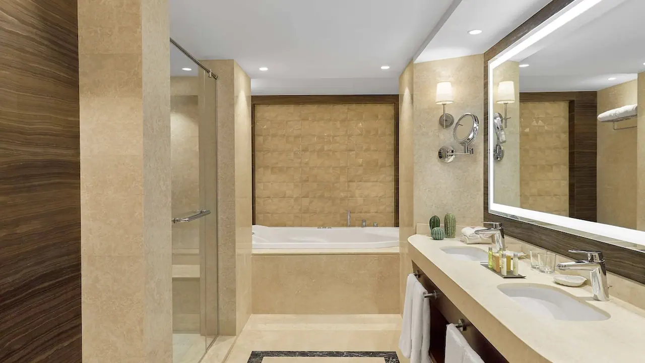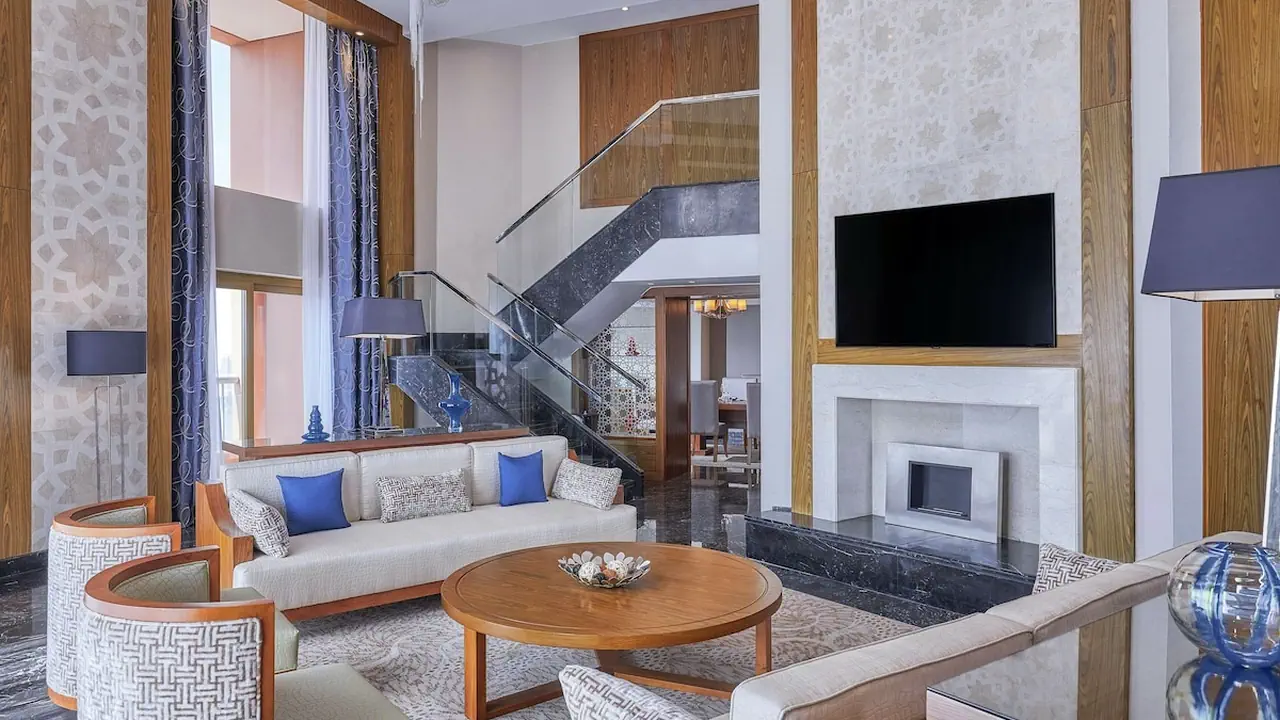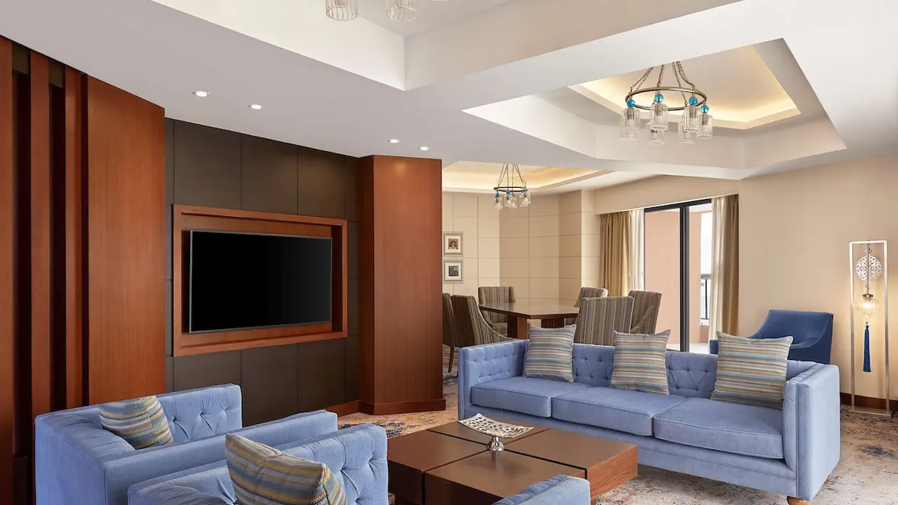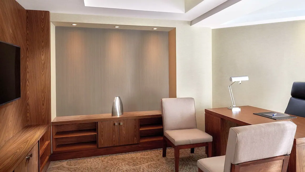 - الجناح الرئاسي: يقدم الجناح الرئاسي تجربة لا مثيل لها مع مساحة واسعة، منطقة طعام خاصة، وإطلالات رائعة على المدينة. يُعد الخيار الأمثل للإقامات الخاصة أو المناسبات المميزة.