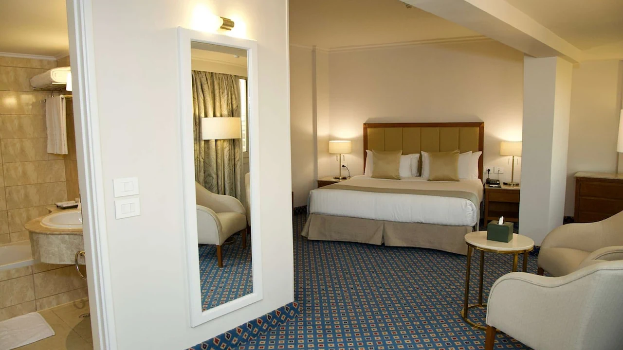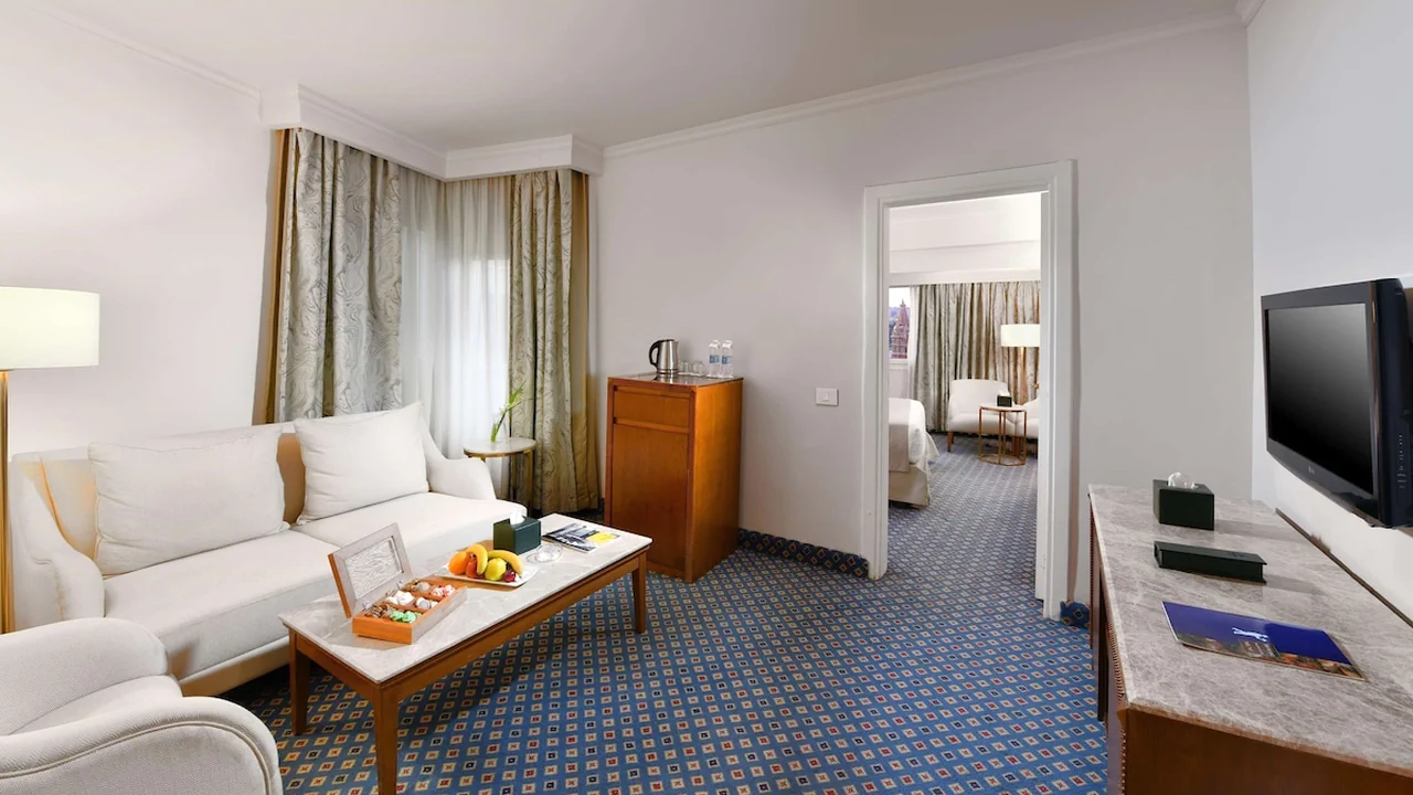 - الجناح الرئاسي: يوفر الجناح الرئاسي مساحة واسعة مع منطقة طعام خاصة، وتجهيزات راقية، وإطلالات رائعة على المدينة، وهو الخيار الأمثل للإقامات الخاصة أو المناسبات المميزة.