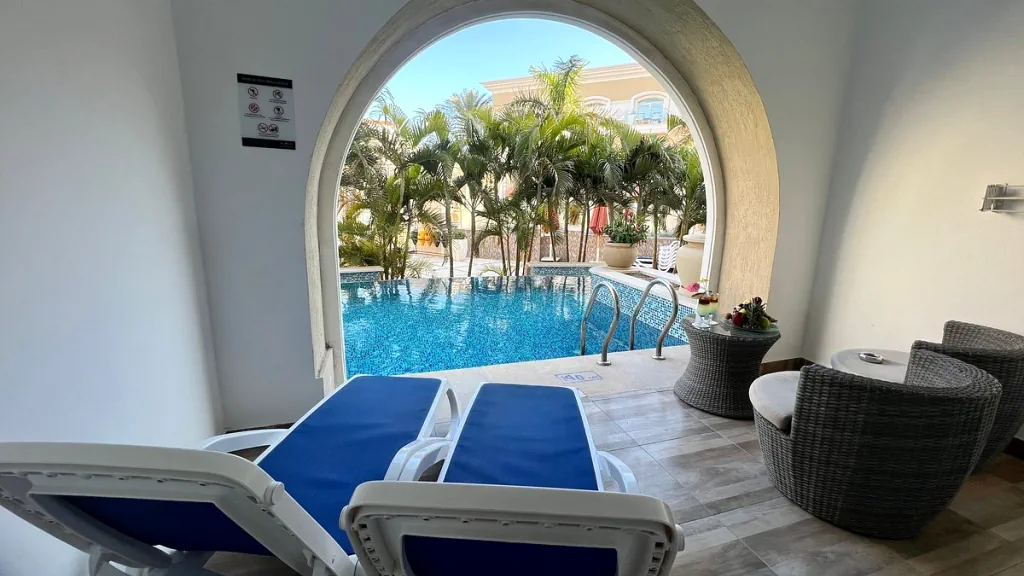 الموقع: يقع المنتجع في سهل حشيش، أحد أكثر الوجهات السياحية جذباً على البحر الأحمر. يتمتع بموقع مميز على بعد 25 دقيقة بالسيارة من مطار الغردقة الدولي، ما يسهل الوصول إليه للزوار القادمين من مختلف أنحاء العالم.