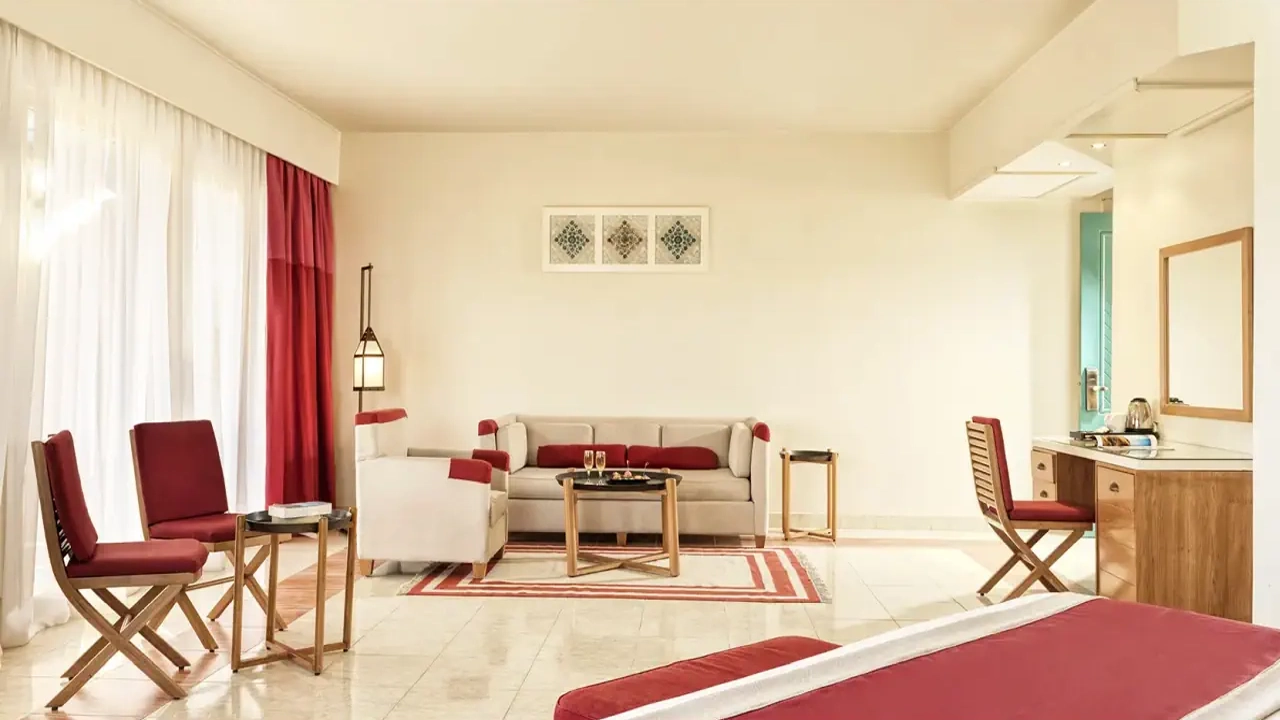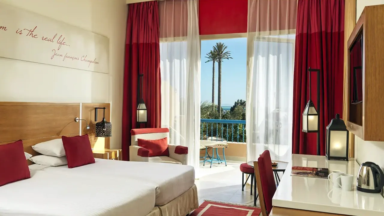 الغرف على الشاطئ: إذا كنت تبحث عن تجربة فريدة، اختر الغرف على الشاطئ التي توفر وصولاً مباشرًا إلى الرمال الذهبية والبحر، مما يتيح لك الاستمتاع بأجواء البحر الأبيض المتوسط طوال اليوم.