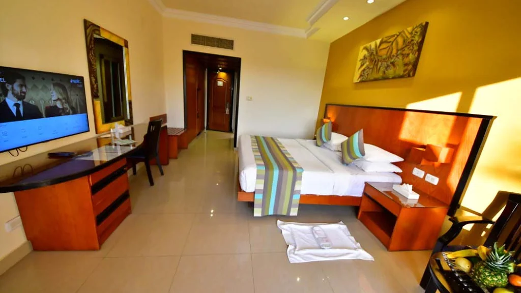 - الغرف القياسية: تمتاز بتصميم عصري ومريح مع أسرّة مريحة، تلفاز بشاشة مسطحة، خدمة واي فاي مجانية، وميني بار. توفر الغرف إطلالات رائعة على الحدائق أو المسبح.