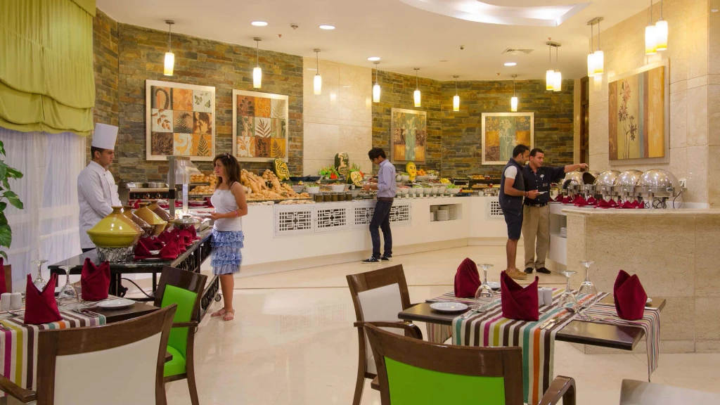 يُقدم المنتجع وجبة إفطار بوفيه يومياً، ويمكن للضيوف الاستمتاع بالمشروبات الساخنة في المقاهي المتاحة، أو تناول الكوكتيلات المنعشة في بار وحانة Fun.