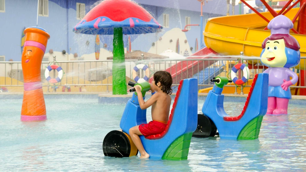 يتميز المنتجع بوجود منتزه مائي يتضمن مسبحين، أحدهما مُدفأ للأطفال، بالإضافة إلى منتزه Fun Valley الترفيهي الذي يضم 31 ديناصوراً بالحجم الطبيعي ومجموعة متنوعة من الألعاب. يوفر أوتو وورلد تجارب سباق مثيرة، ويمكن للضيوف الوصول إلى شاطئ جميل خلال 15 دقيقة عبر حافلات نقل مجانية تعمل كل ساعة حتى غروب الشمس.