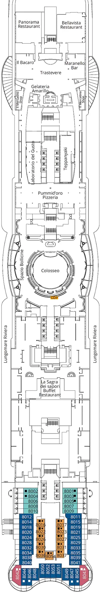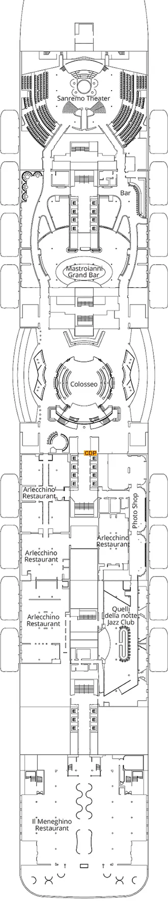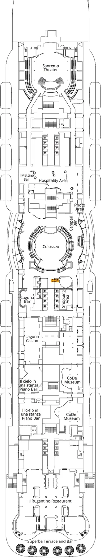 Costa Smeralda is a maritime masterpiece blending luxury and entertainment. With a capacity for 6,554 passengers, it boasts 11 restaurants, 21 bars, spacious cabins, multiple entertainment areas, two pools, a wellness club, and a spectacular theater. Adorned with cutting-edge technology and art, the ship ensures a unique and enjoyable experience throughout the journey.