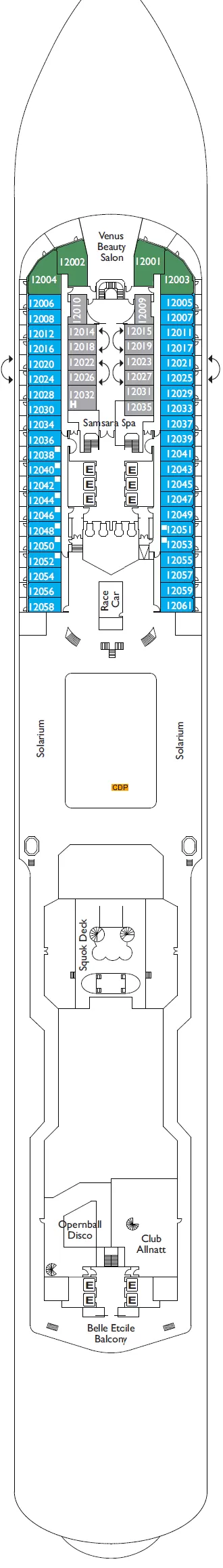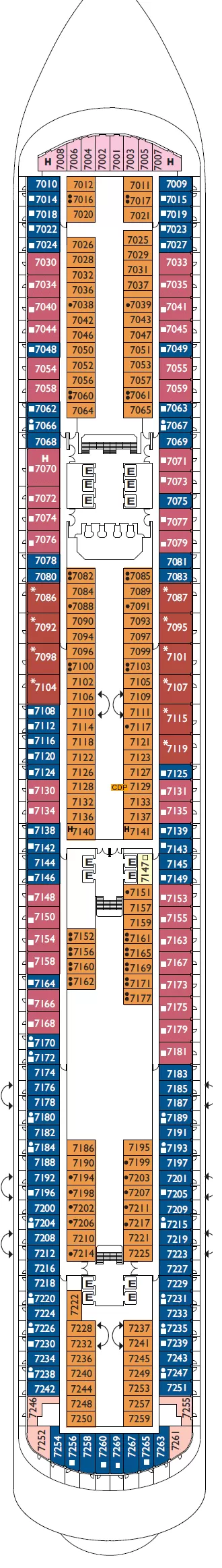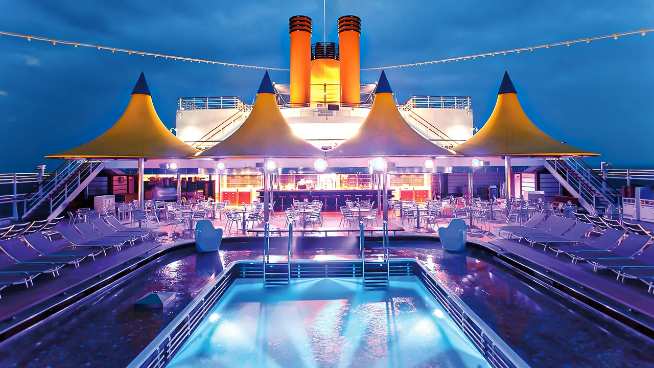 The ship has several swimming pools and panoramic view hot tubs. Passengers can indulge in spa experiences and wellness treatments at the modern wellness center. Additionally, there is a sports court and a running track available.