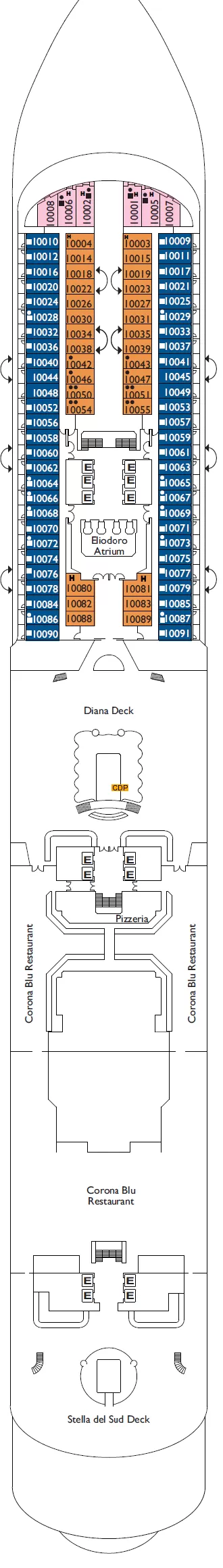 "Costa Diadema" is a luxurious cruise ship owned by Costa Cruises, built in 2014. The ship features a modern and elegant design, providing spacious areas for passengers to enjoy their journey in comfort. It offers a variety of facilities and services, including fine dining restaurants serving international cuisine, theaters hosting diverse entertainment shows, shopping galleries, and modern fitness centers.