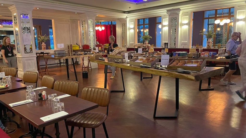 The hotel's brasserie serves classic French cuisine. Meals can be taken on the terrace parallel to Boulevard Haussmann. Guests can enjoy drinks near the fireplace at the La Bibliothéque bar in the lobby.