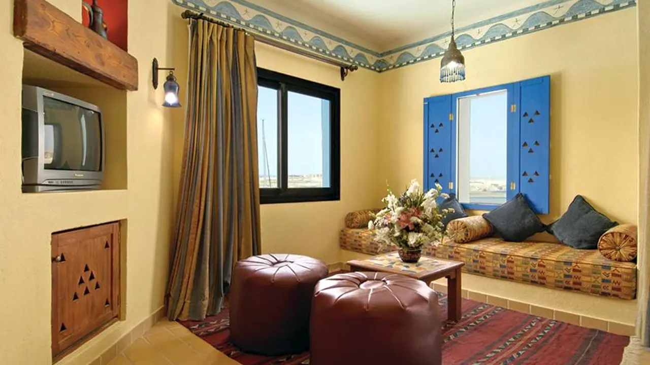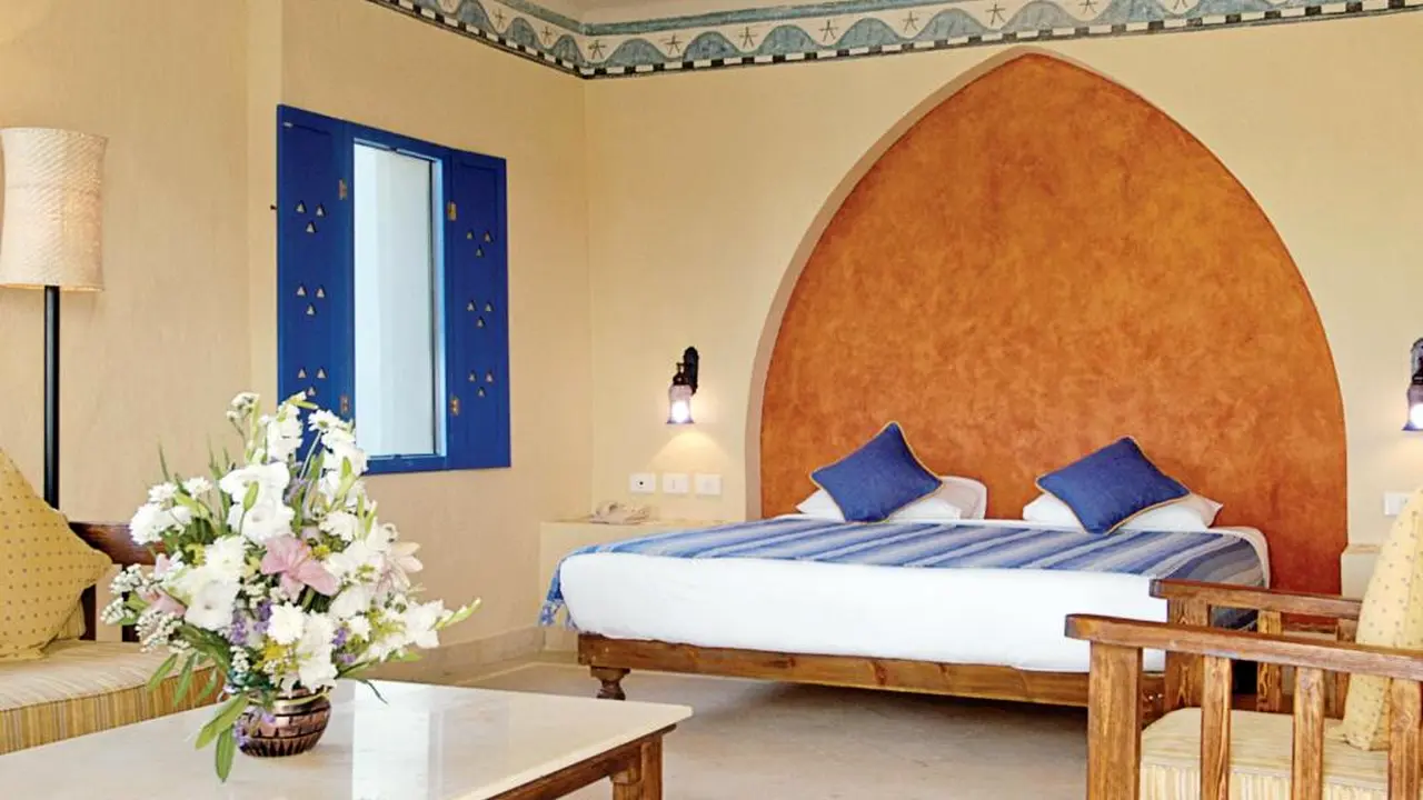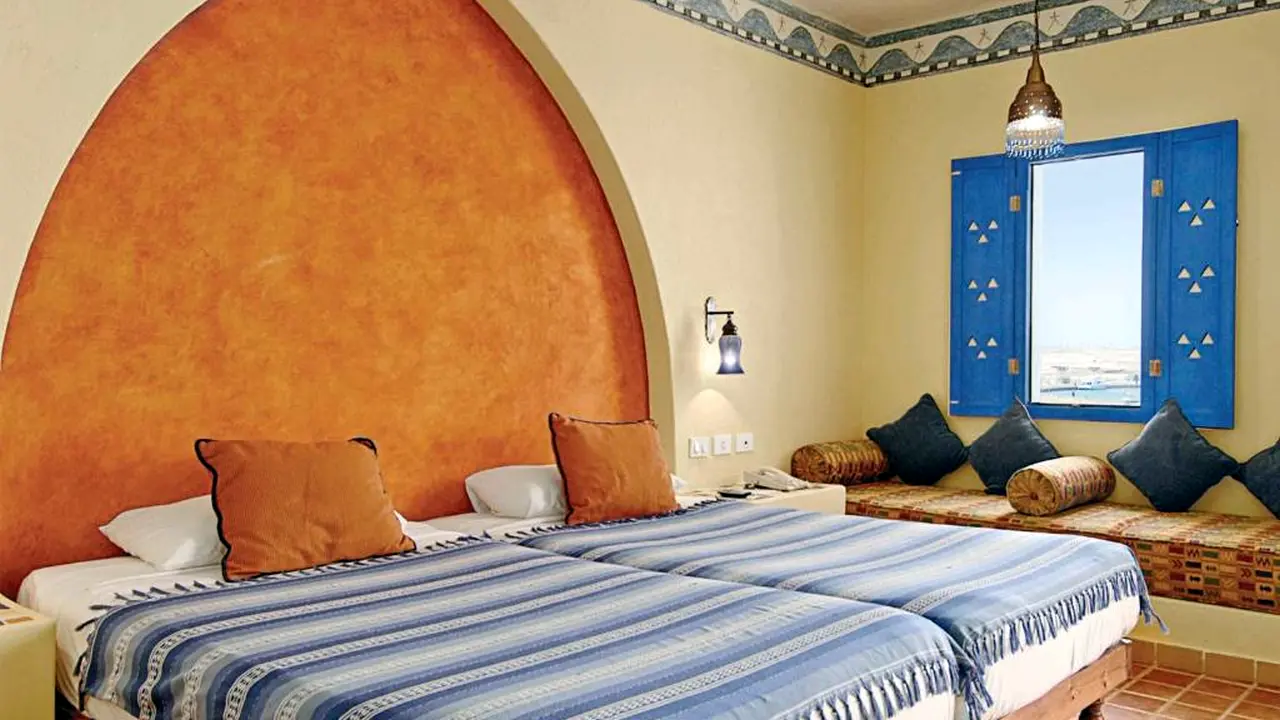 All rooms in the "Marina Lodge" are designed in an elegant Nubian style, each room has a balcony or terrace overlooking the pool, garden or the sea. The rooms are fitted with TV with satellite channels, a minibar and a wardrobe. Also in some rooms there is an oriental seating area with a sofa, which guarantees you a comfortable and pleasant stay.