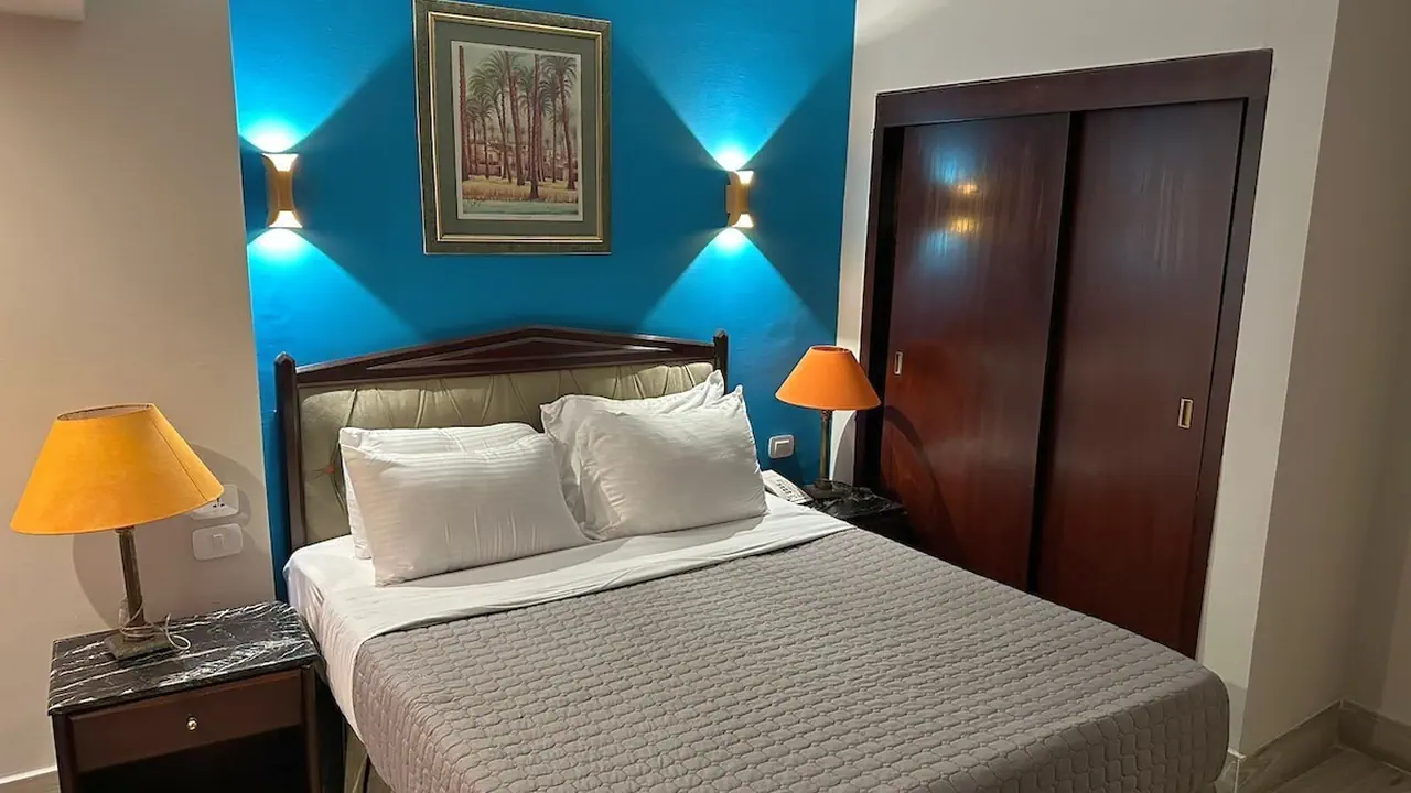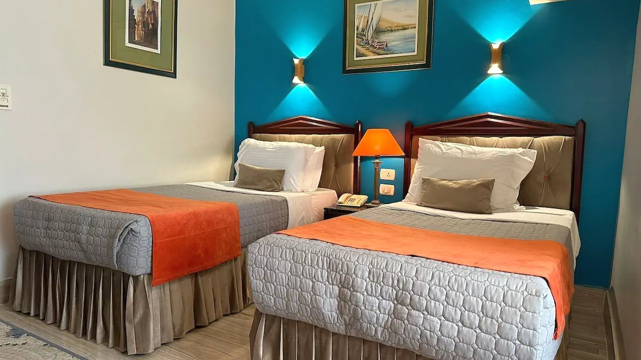 All rooms at Gawharet Al Ahram Hotel are air-conditioned and feature a flat-screen TV with satellite channels, a telephone, and a minibar. Each room includes a private bathroom equipped with a hairdryer, and guests can enjoy free Wi-Fi. The rooms provide a comfortable environment to ensure guests' relaxation after a long day of exploration.