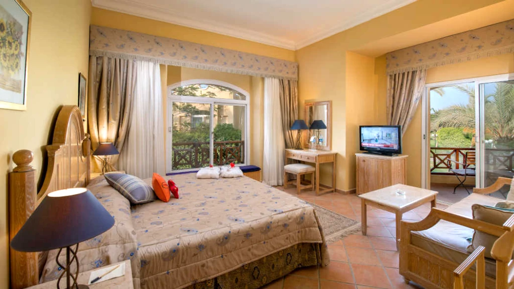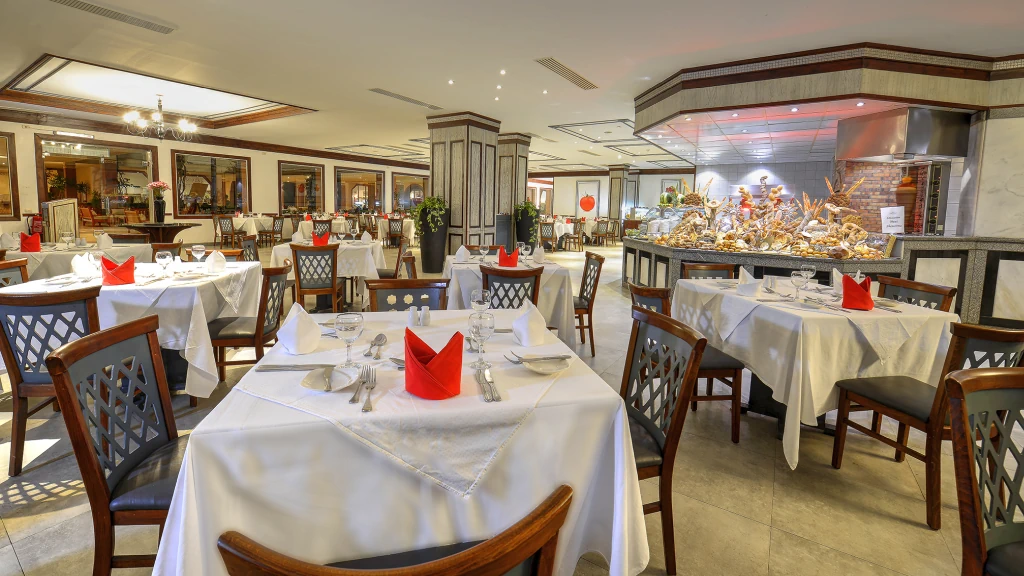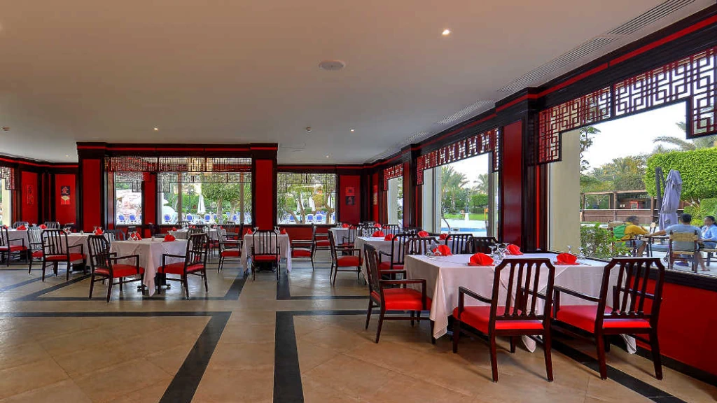 Nile Oasis restaurant serves Mediterranean cuisine (buffet is served) and overlooks the pool, Asia restaurant serves dishes from the Far East, the best Szechuan and Mandarin cuisine, there is also a poolside bar and a beach bar serving refreshing food and drinks including pizza and homemade pasta.