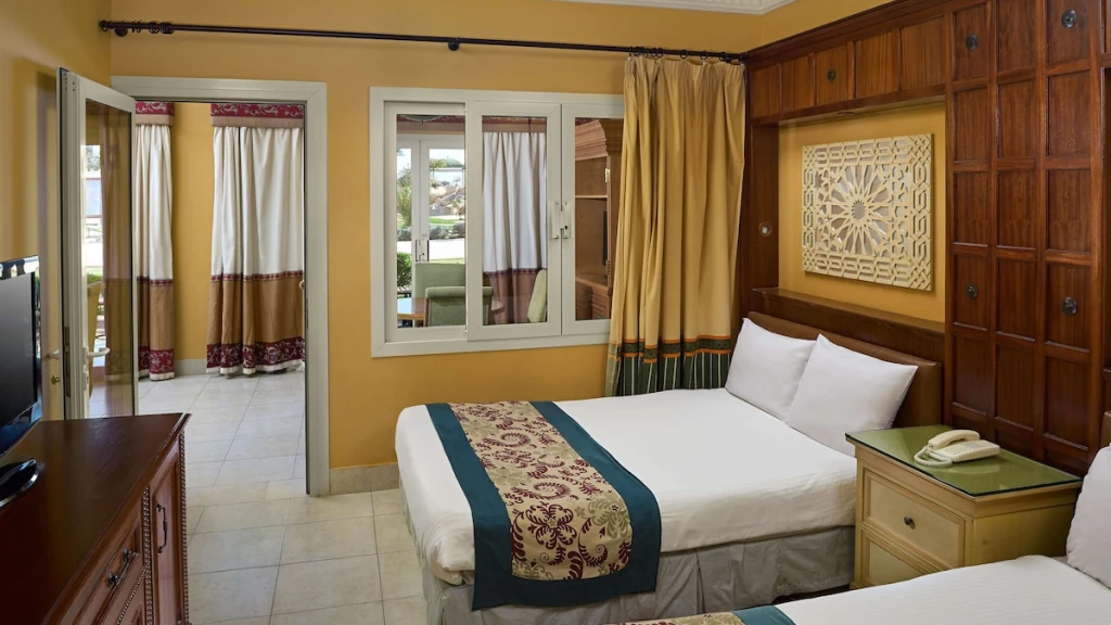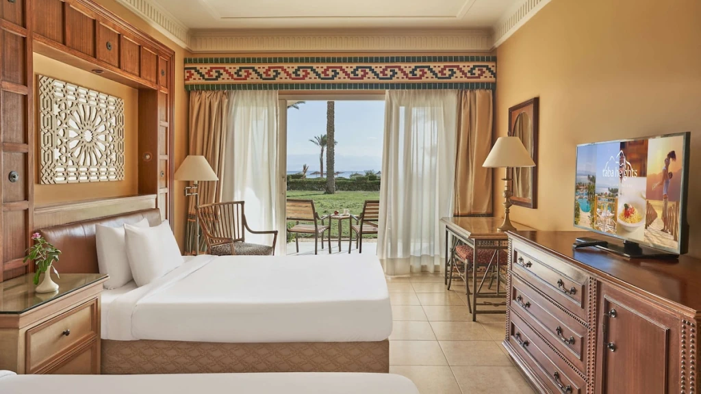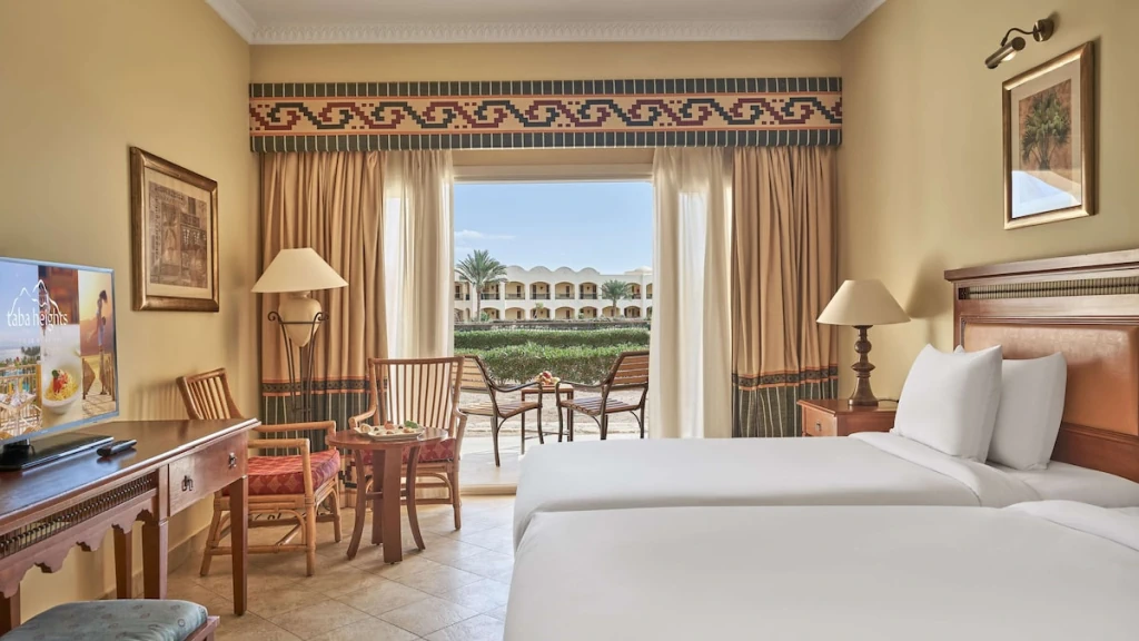 The rooms at the hotel are elegantly furnished, offer a large private balcony and a bathroom, there are also large beds, where the king-size bed is more than two meters wide.Featuring a traditional Egyptian-inspired architectural design, Mosaic Beach Resort Taba Heights is an all-inclusive property featuring two main restaurants with themed buffets, 8 swimming pools including a heated pool, a seawater pool, a children's pool, as well as a hot tub.it also features a poolside snack bar and a restaurant dedicated to Asian cuisine.