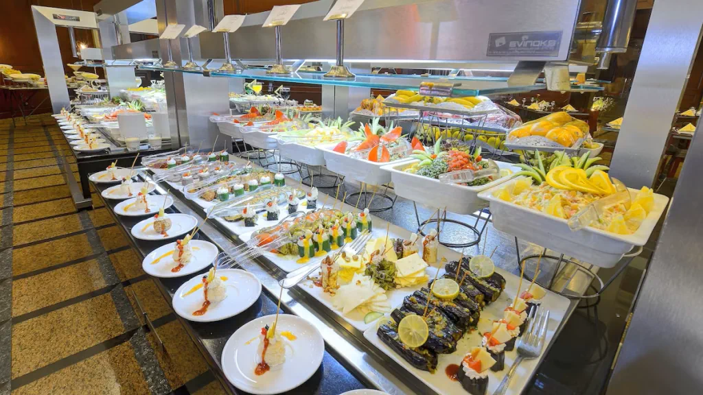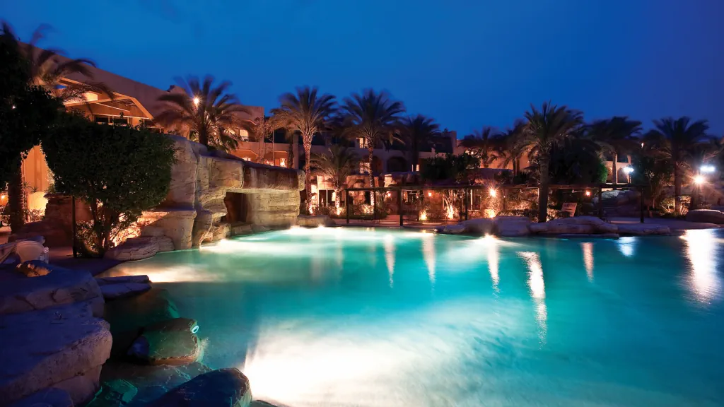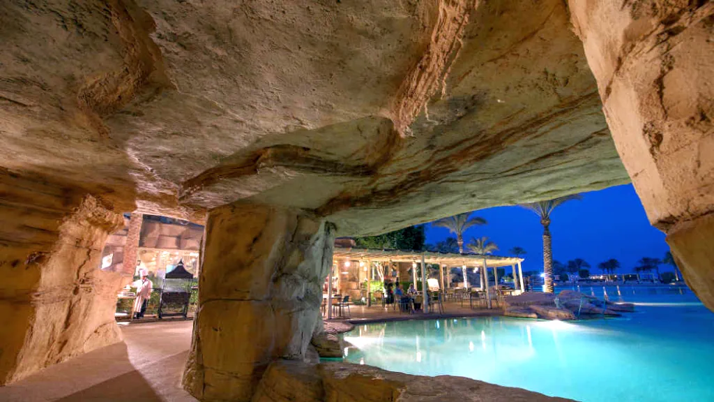 The luxurious Grand Hotel has several restaurants, where guests can enjoy Italian cuisine at the Ponte Vecchio restaurant near the pool waterfall, while the Beach restaurant serves pizza baked in a wood-fired oven and Lebanese dishes.