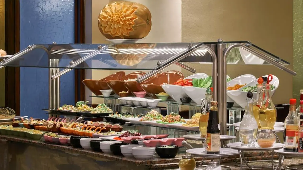 - المطعم الرئيسي: يقدم بوفيه متنوع يشمل الأطباق العالمية والمحلية خلال الإفطار والغداء والعشاء.