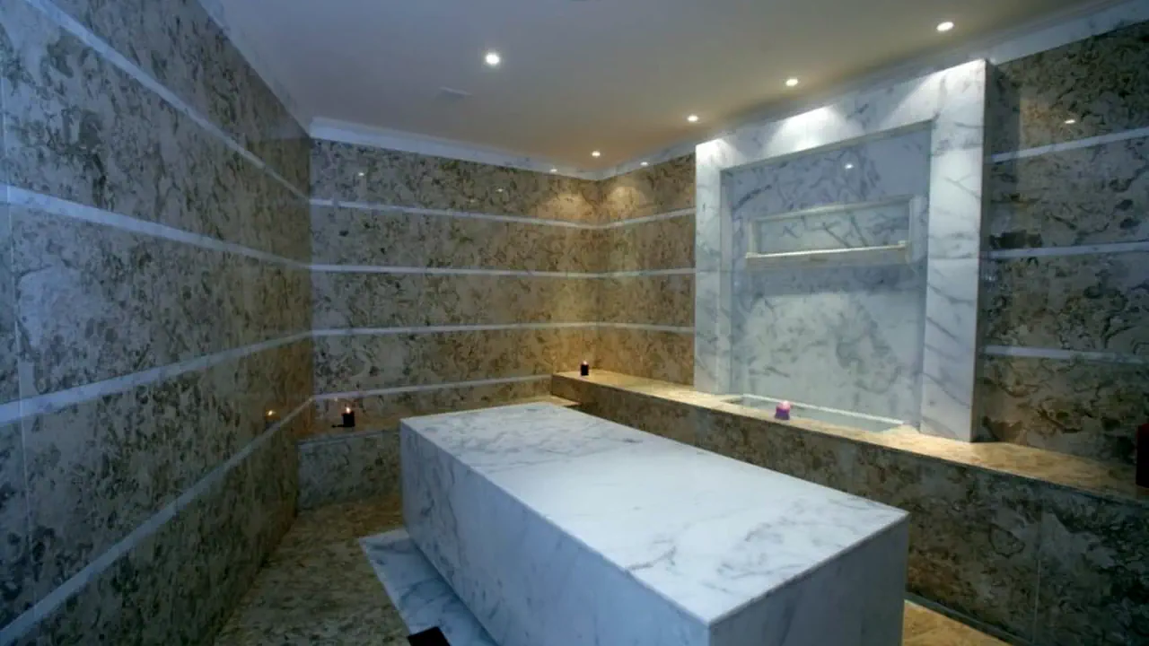 مركز لياقة بدنية ومنتجع صحي: يوفر المركز معدات حديثة للياقة البدنية، بينما يقدم السبا جلسات تدليك وعلاجات صحية للاسترخاء.