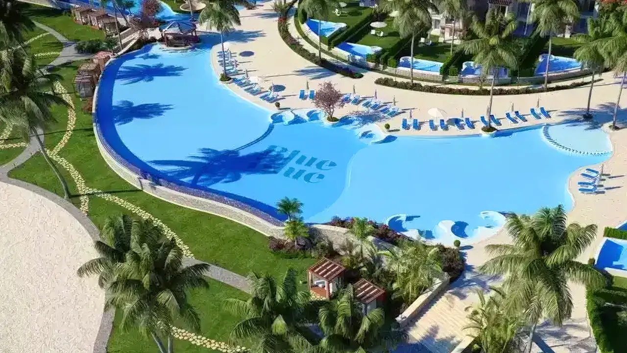 منتجع بلو بلو العين السخنة يمتد على مساحة 120,000 متر مربع، ويتميز بتصميم عصري مع مسطحات مائية وحدائق واسعة، مما يوفر بيئة مثالية للاسترخاء والاستمتاع بالأجواء الطبيعية. يتضمن المنتجع مجموعة من الشاليهات والفيلات التي تطل جميعها على البحر أو المسطحات المائية، مما يضمن تجربة فريدة لجميع الضيوف.