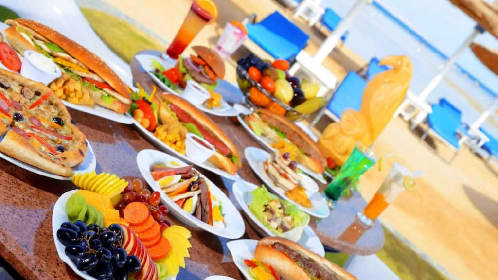 - البارات: تقدم مشروبات متنوعة ووجبات خفيفة في أجواء مريحة بجانب المسبح أو على الشاطئ.