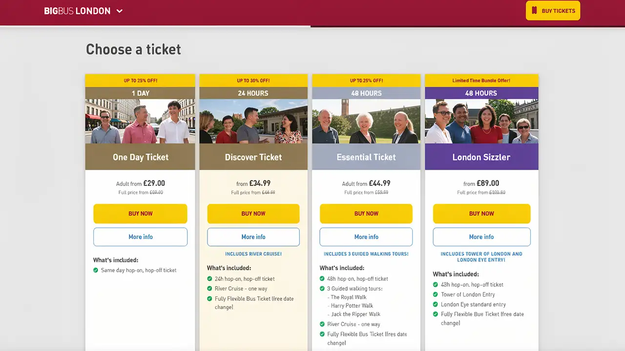 You can buy tickets directly at the big bus stations located in the main tourist areas of London. The station staff will help you choose the appropriate tours and explain the details regarding tickets.