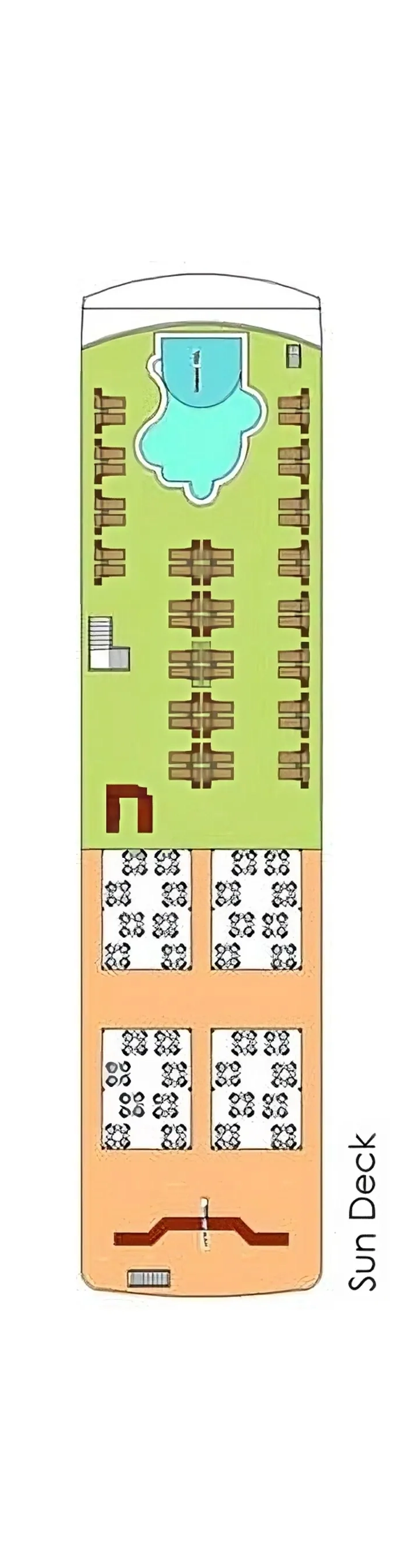 - Pool: An outdoor pool allows passengers to relax and enjoy the sunshine while sailing along the river.